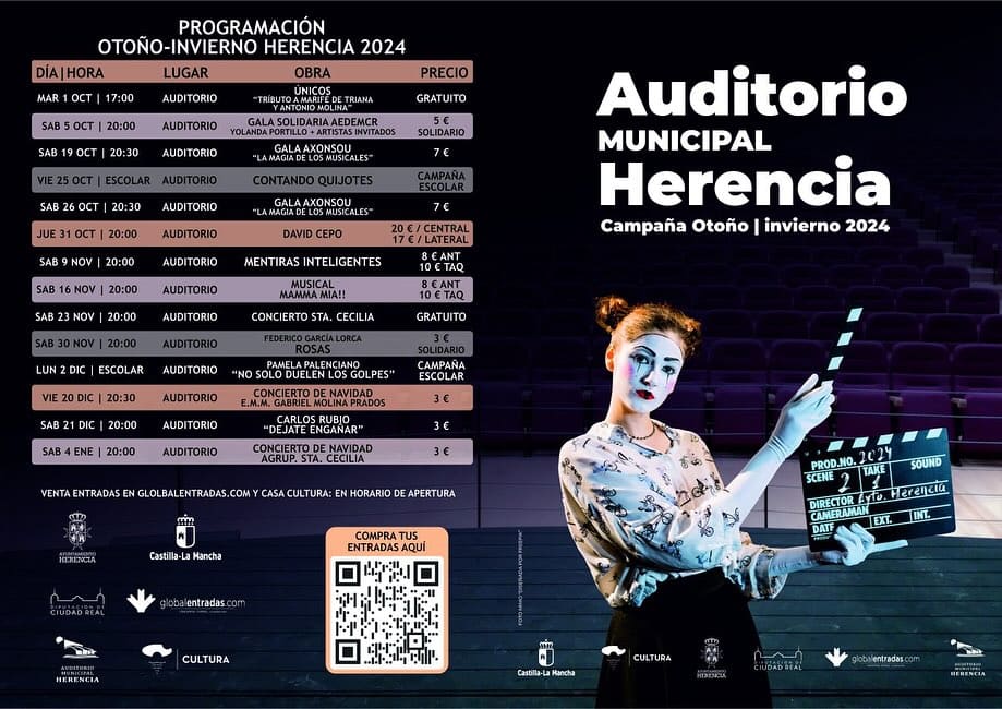 The Municipal Auditorium of Herencia has revealed its ambitious cultural program for the autumn and winter season of 2024, offering a wide range of genres and artistic styles designed to attract audiences of all ages. The Culture department has made a special effort to provide a diverse program that combines local talent with national productions, establishing Herencia as a cultural reference in the region.