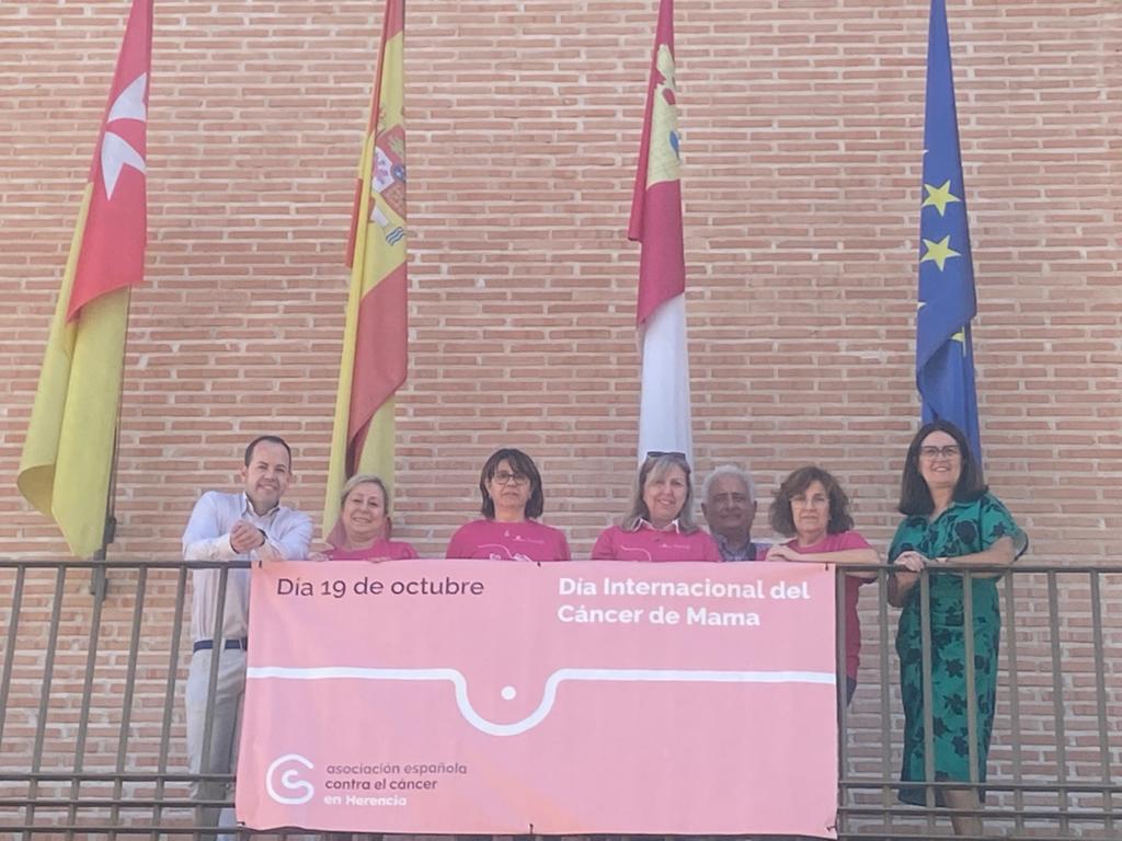 In an act of solidarity and recognition, the balcony of the Herencia City Hall is now adorned with a commemorative banner in honor of International Breast Cancer Day, a symbolism of resistance and support for those battling this disease. Representatives from the Spanish Association against Cancer in Herencia, along with Mayor Sergio García-Navas and the councilor for social welfare, Conchi Rodríguez-Palancas, were responsible for hanging it, demonstrating a united community front against breast cancer, which will be celebrated on October 19th.