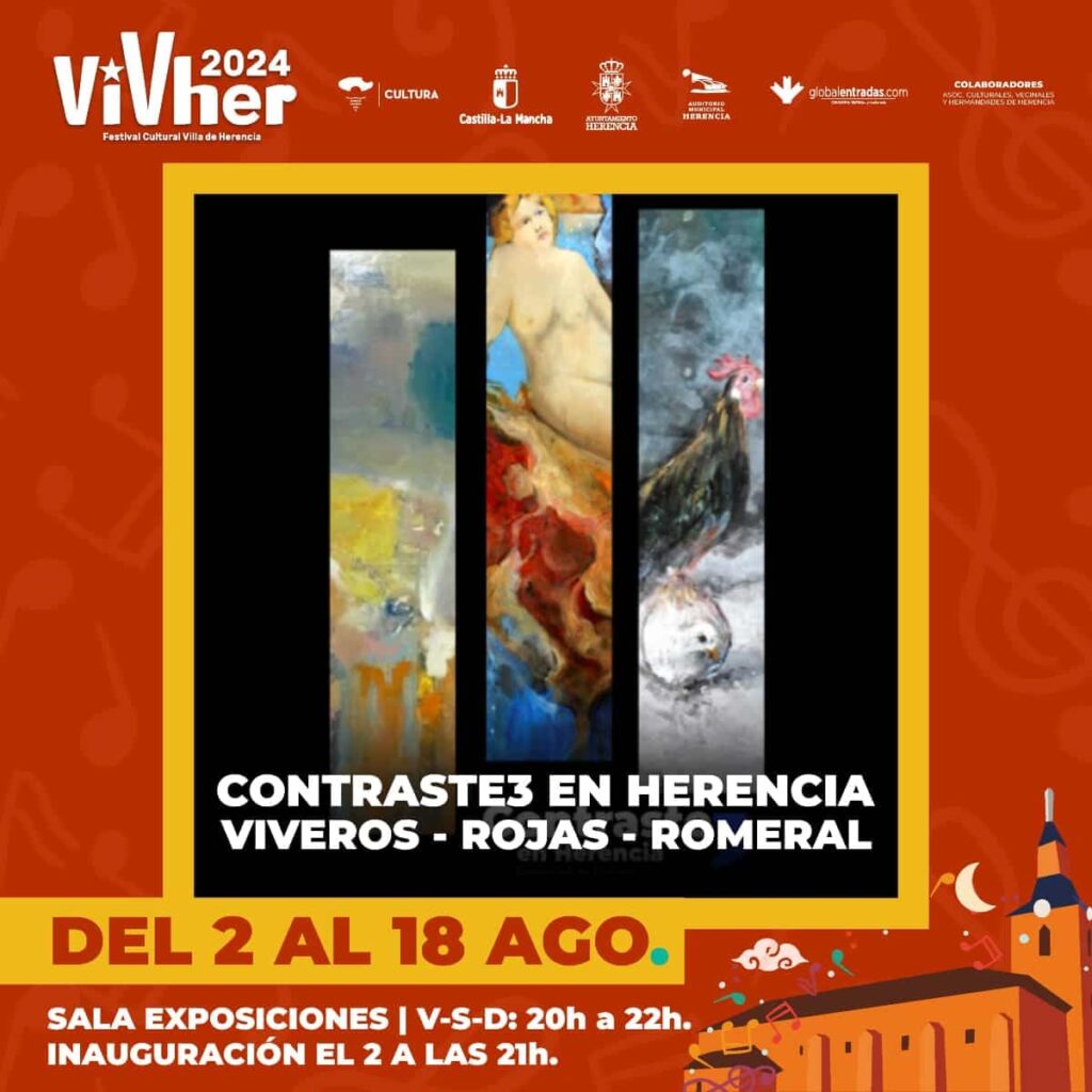 From the next day 2 until August 18, art lovers will have an unmissable appointment in Herencia with the painting exhibition “Contraste3”, which brings together the works of artists Viveros, Rojas, and Romeral. This cultural event is part of the ViVher 2024 program and promises to offer a unique visual experience.