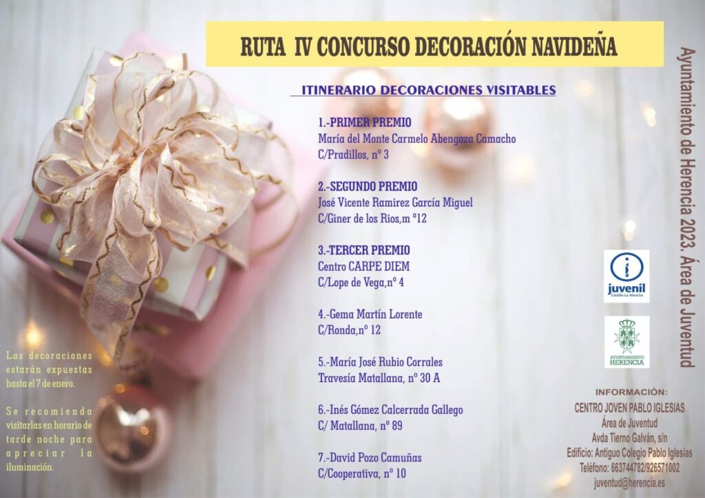 Herencia already has winners for the IV Contest of Christmas Facade Decoration, organized by the Youth Department of the City Council. This year, the contest has shone with the creativity and enthusiasm of the participants, who have decorated their facades with a lot of love and dedication, contributing to create a festive and welcoming atmosphere in the streets of the town.