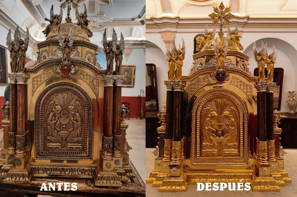The restored sacrarium is part of the sentimental memory of the locality: it was donated in February 1957 by Mr. Manuel Fernández Paniagua and Mrs. Dolores Díaz-Meco, and was installed on March 19 of the same year. Since then, it has housed the Blessed Sacrament in the temple and presides over the daily devotion of the faithful and brotherhoods.