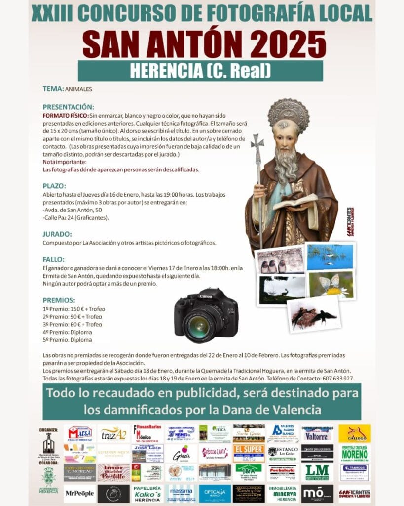 Spanish post in Abierta la convocatoria para el XXIII Concurso de Fotografía San Antón 2025 en Herencia