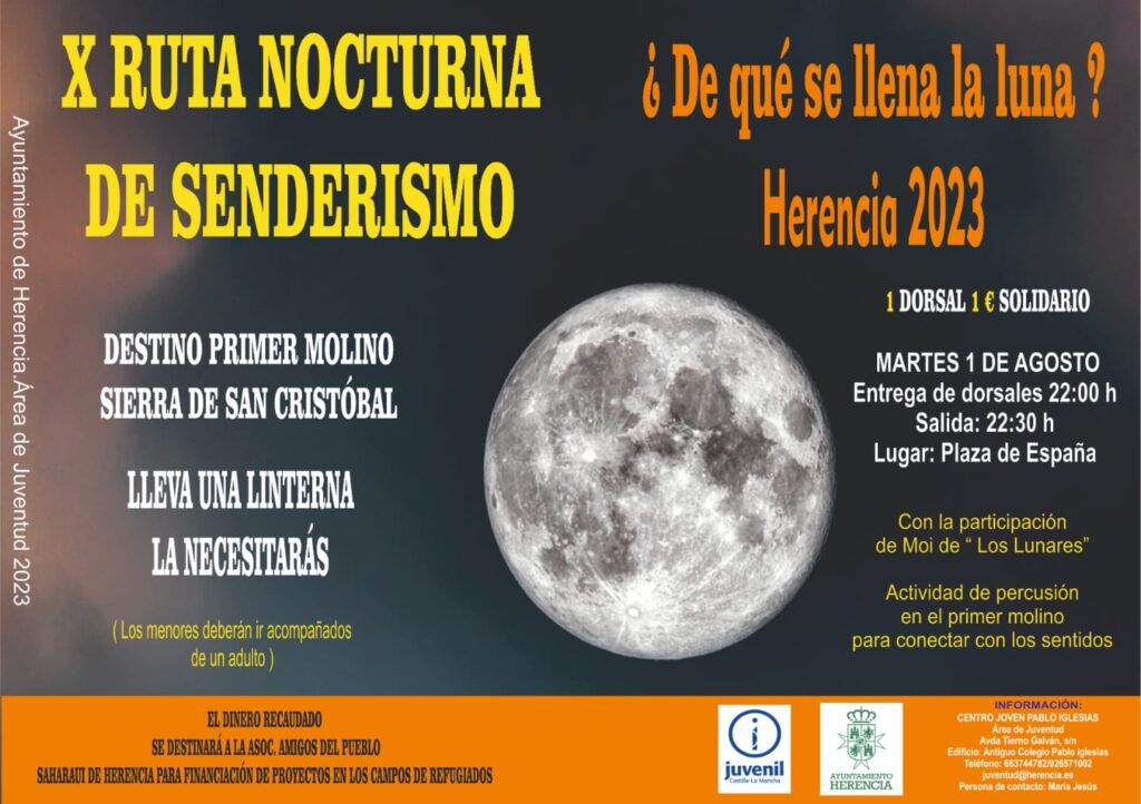 The Youth Area of Herencia has announced the organization of the tenth edition of its popular Night Hiking Route, called “What does the moon fill with?” This initiative, which combines sports, nature, and solidarity, has managed to capture the attention of the local community in recent years.